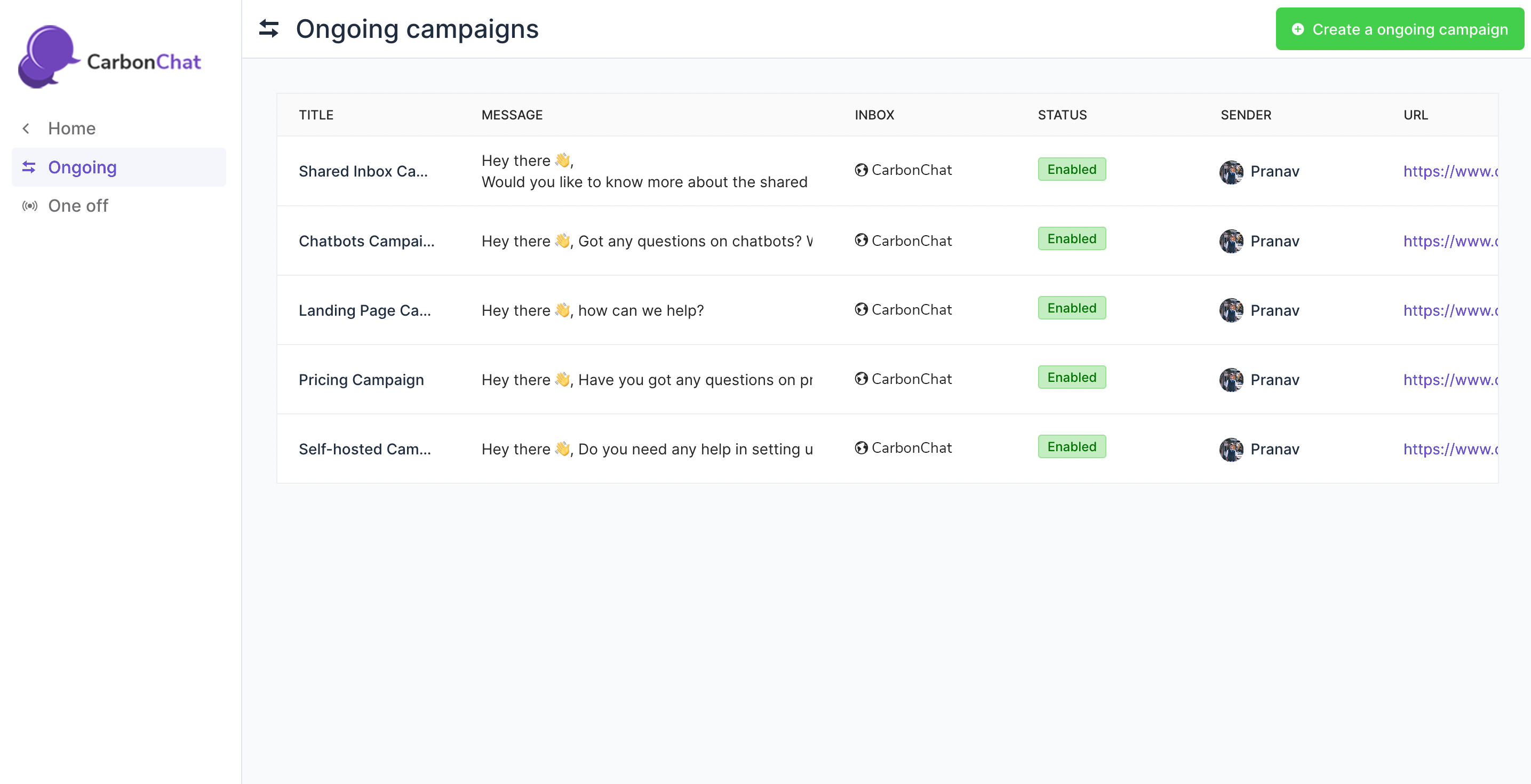 Ongoing campaigns: For Website live-chat, you can create an ongoing campaign so that if a user visited a page and stayed for x minutes, you could send outbound message. This will help in more conversions.