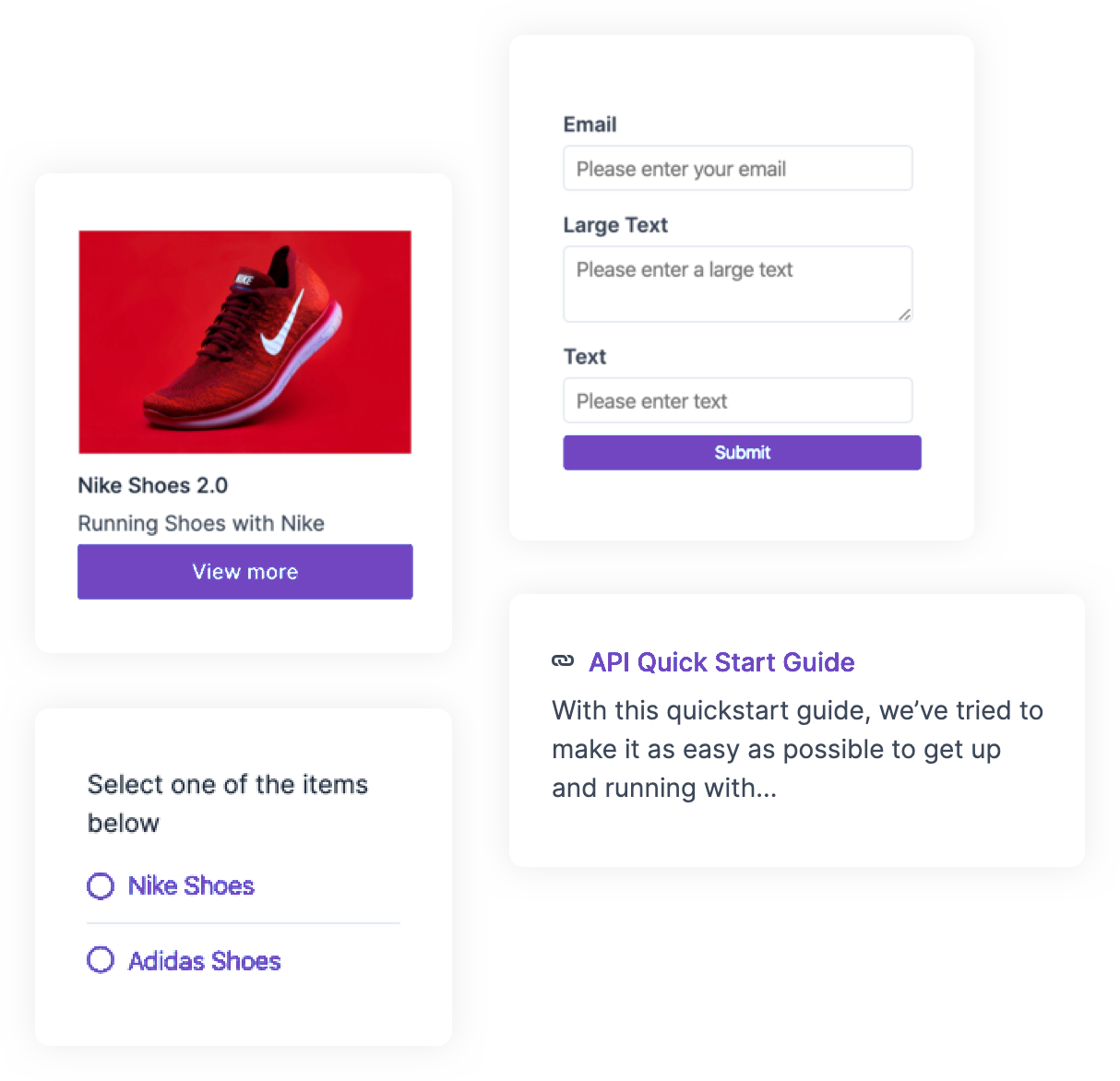 { "name": "text_aread", "placeholder": "Please enter text", "type": "text_area", "label": "Large Text", "default": "Sample text" },