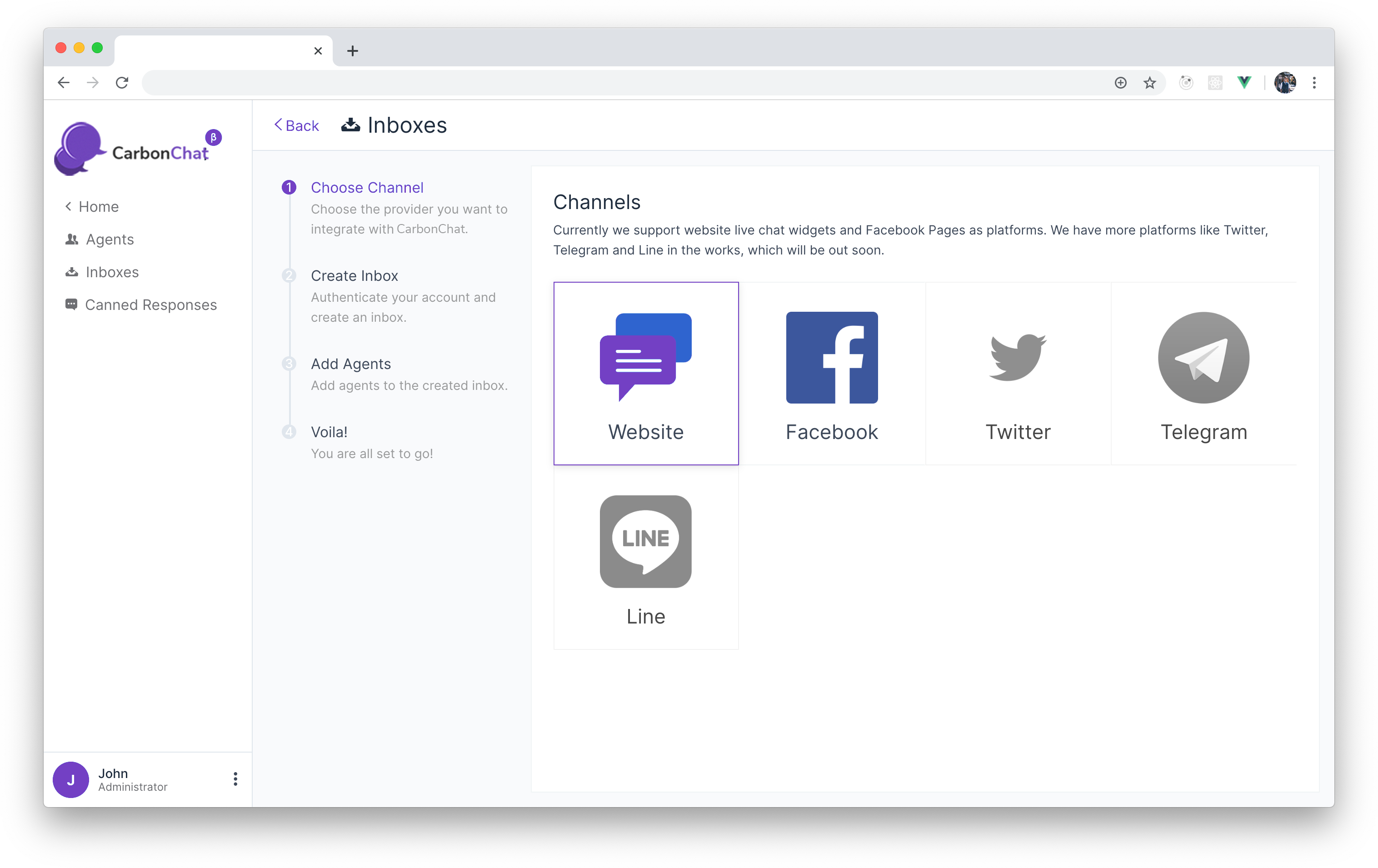 Step 1. Click on "Add Inbox" button from Settings > Inboxes page.