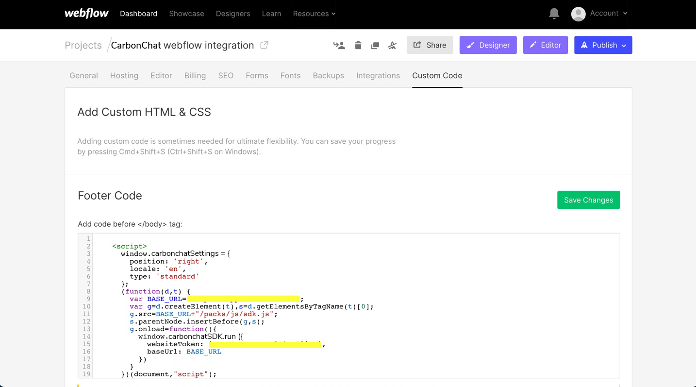 # Integrating CarbonChat with Webflow website