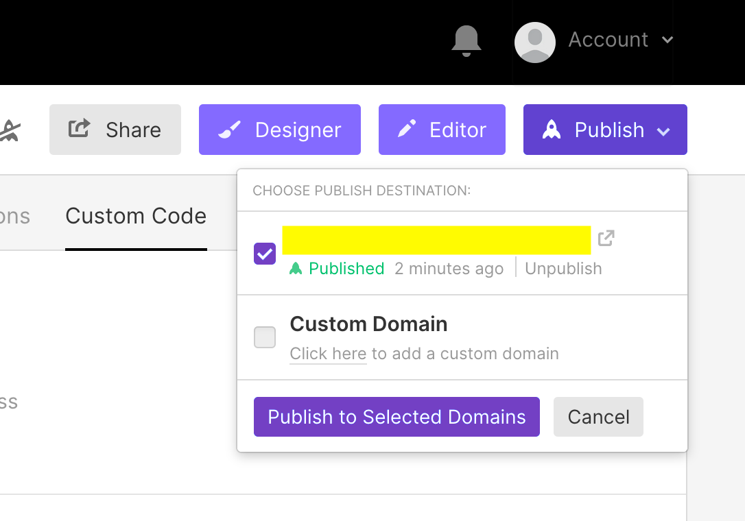 Click on Publish -> Select the website -> Publish to selected domains.