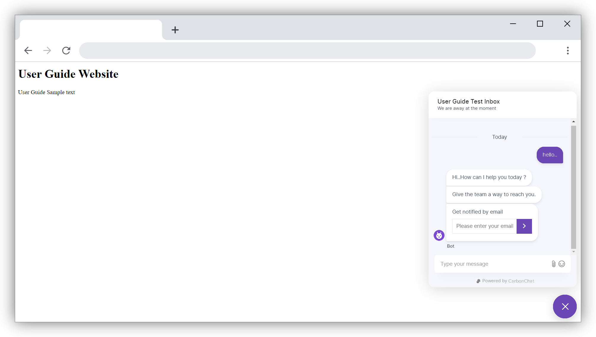 Now, if you open your website on the browser window, you can see that CarbonChat Widget has been added to your website on the right-hand side. This can be seen in the screen below.