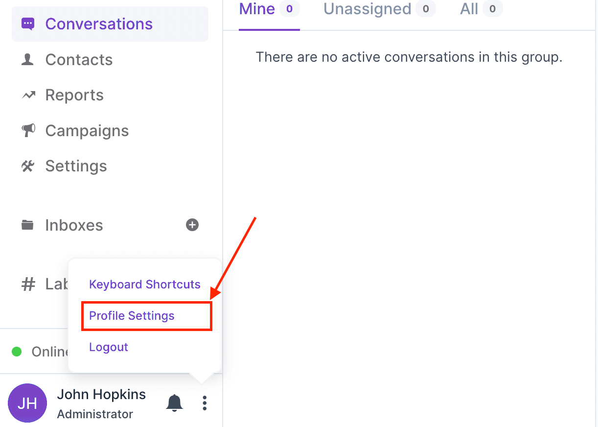 This section will help you to update your profile on CarbonChat. The updated information will be used on the dashboard, live-chat widget, and in all external communication emails.