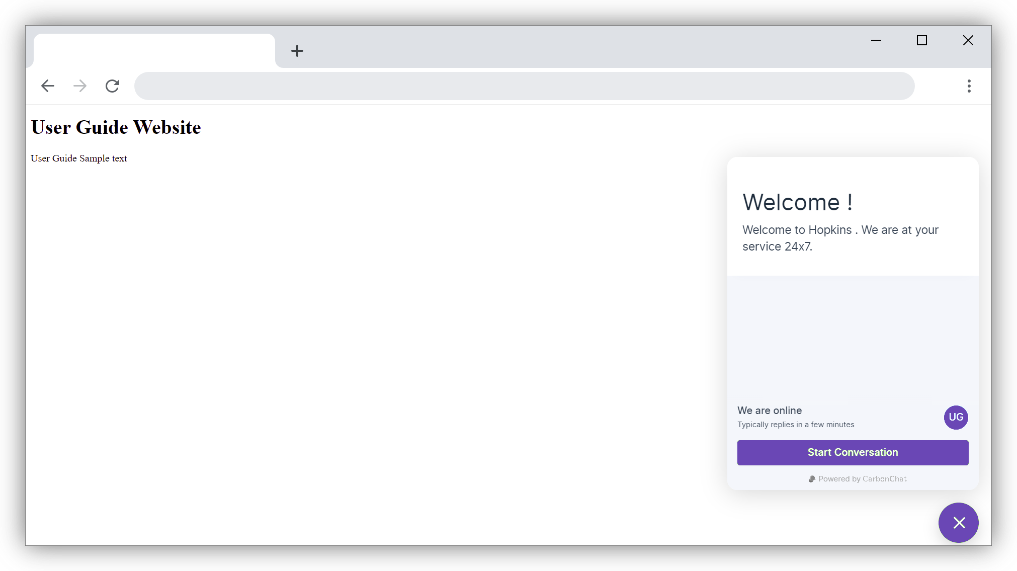 Now, if you open your website on the browser window, you can see that CarbonChat Widget has been added to your website on the right-hand side. This can be seen in the screen below.